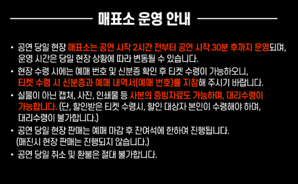 - 공연 중 사진, 영상 촬영, 녹음/중계 등 전면 금지